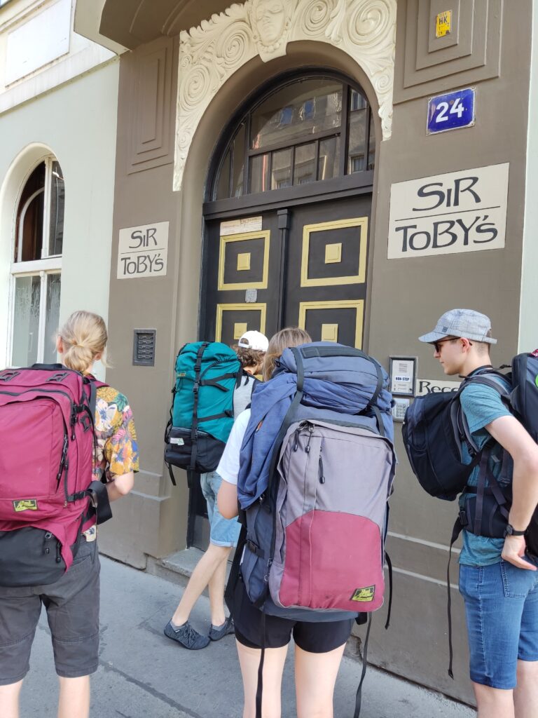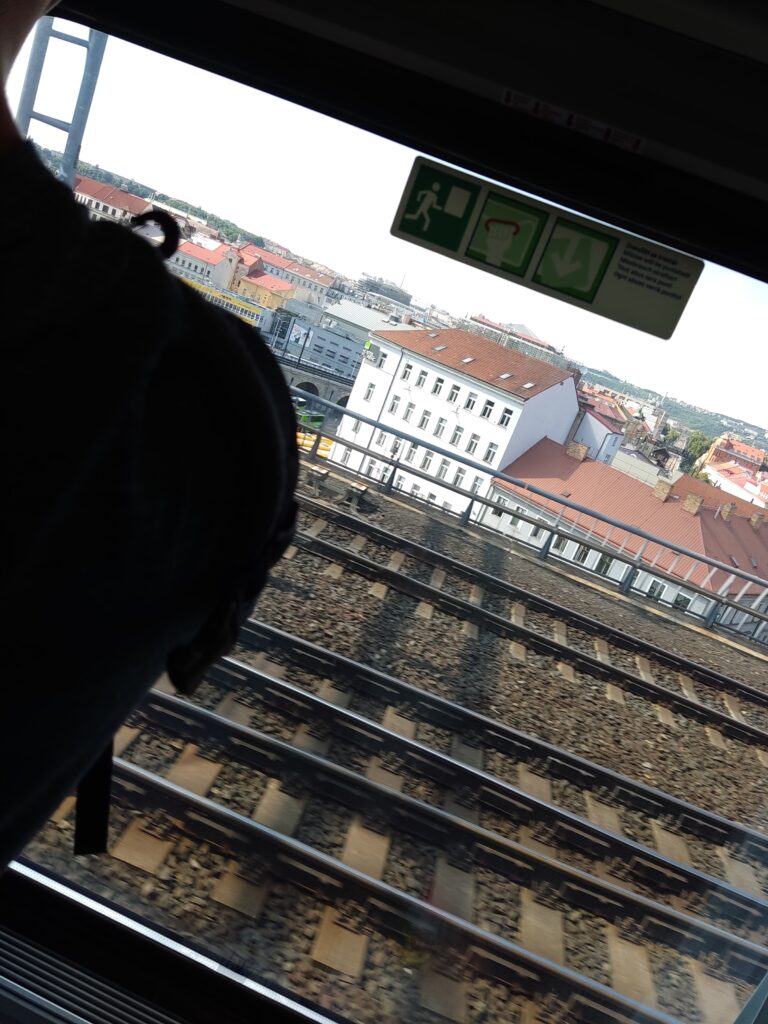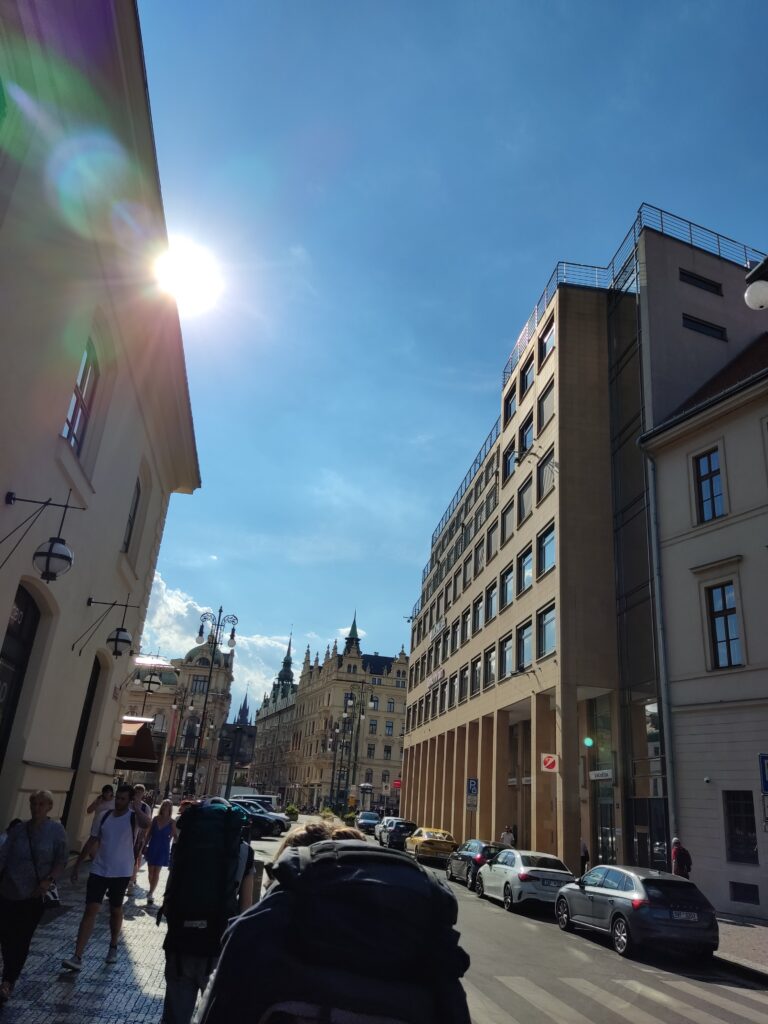 Aus dem Zug heraus und uns empfängt ein warmer Prager Sommer. Leider wissen wir ihn mit je ~10kg Gepäck nur begrenzt zu schätzen, je weiter wir laufen. Denn der direkte Weg ist nicht gut für Fußgänger, weshalb wir einen Umweg laufen. Die Konsequenz (neben Erschöpfung): mehr erste Eindrücke und Fotos!