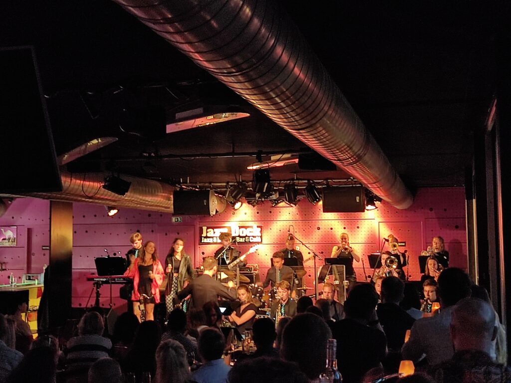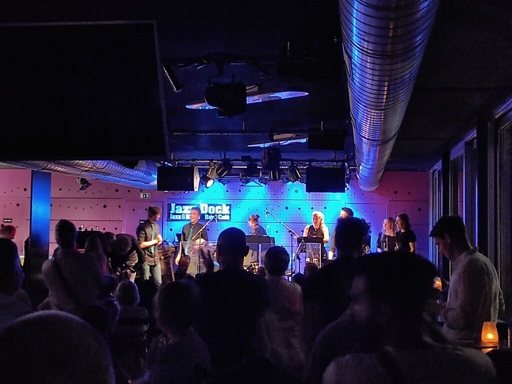 Weil es uns wirklich, wirklich gefallen hat, gehen wir zum Abschluss des Prag-Aufenthalts nochmal ins Havelská Koruna. Und dann schauen wir beim Jazz Dock vorbei – und kommen genau rechtzeitig zu einem Auftritt einer niederländischen Studenten-Band. Wilder Mix aus Funk, Soul, etwas House und viel Spaß, perfekt, um den ersten Stopp der Reise abzurunden.