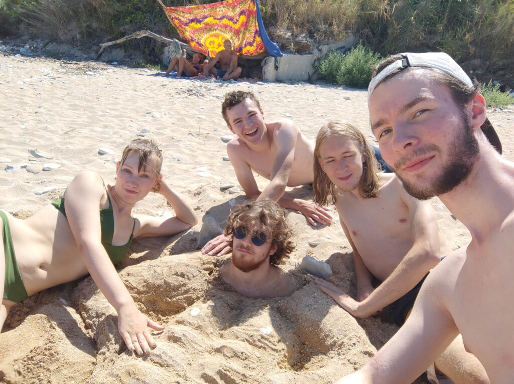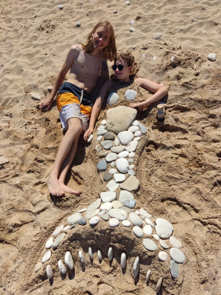 Den letzten Tag in Ancona lassen wir uns verwöhnen. Morgens von Lene und Jannis, die Burritos vorbereiten. Die essen wir am Strand, an dem wir heute fast den ganzen Tag bleiben wollen. Es ist der erste Sandstrand der Geschichte – also, unserer Reisegeschichte. Auf der gestrigen Wanderung haben wir ihn schon von ganz weit oben gesehen, jetzt sind wir da und genießen das Wasser und die Sonne (Spoiler: Ein ganzer Tag Sonne führt aber so was von zu Sonnenbrand, keine bleibt verschont).