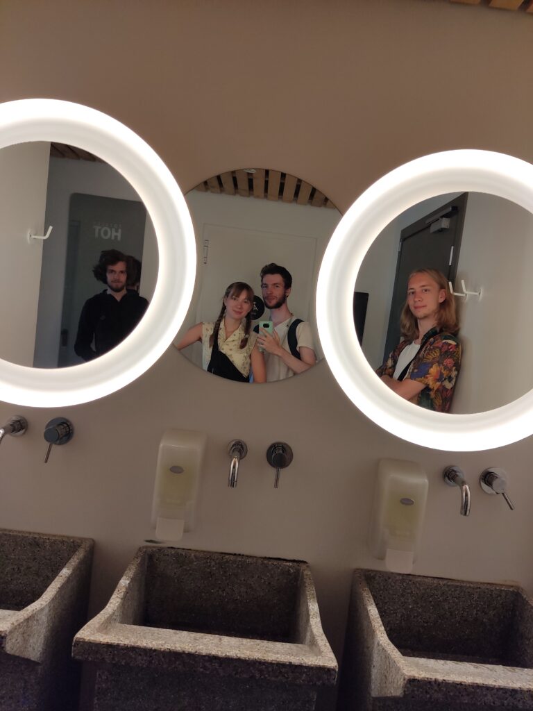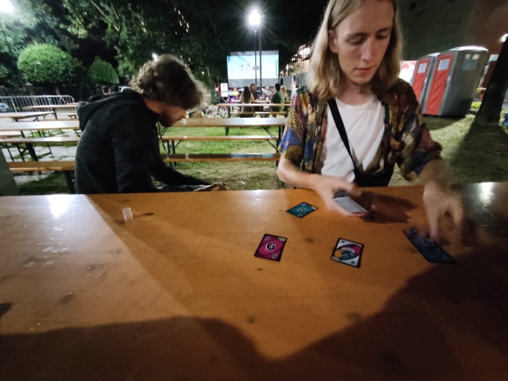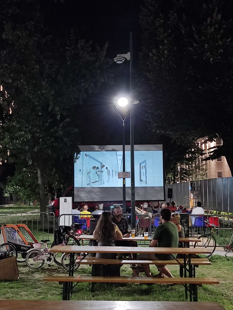 Später lernen wir in unserem Zimmer die anderen Bettbewohner kennen; mit Isabel aus South Dakota und mit Carter aus Kanada freunden wir uns an. Mit Carter gehen wir Karten spielen im Park um die Ecke, wo auch ein Film läuft (auf Italienisch…ist sehr lustig zu hören). Später gehen wir dann mit ihm und Isabel auf die Sommerdisco, die das Hostel (welches sehr groß und hip eingerichtet ist) als Teil von täglichem Programm organisiert. Wir bekommen auch schon Tipps für die Stadt und freuen uns auf die nächsten Tage!