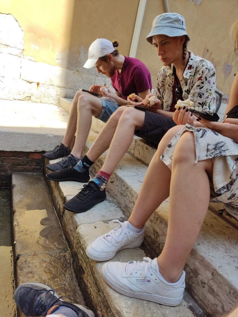 Es ist schon cool, diese „Mega-Sehenswürdigkeiten“ live zu sehen. Aber lange bleiben wir nicht dort, wegen der vielen Touristen, aber auch wegen der heißer werdenden Sonne. Moritz und ich schauen uns noch das Arsenal, den Biennale-Garten (von außen) und ein bisschen der Insel Lido an, welche so anders wirkt als die anderen Inseln (wahrscheinlich, weil dort Autos fahren und ganz andere Häuser stehen). Danach holen wir uns Essen in Mestre und gehen wie gestern nochmal Eis essen. Der Rückweg war voller Späße und Lachen, italienisches Eis hat echt einen ganz besonderen Effekt!